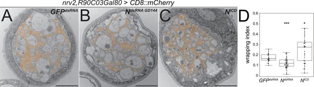 Notch function affects axonal wrapping.