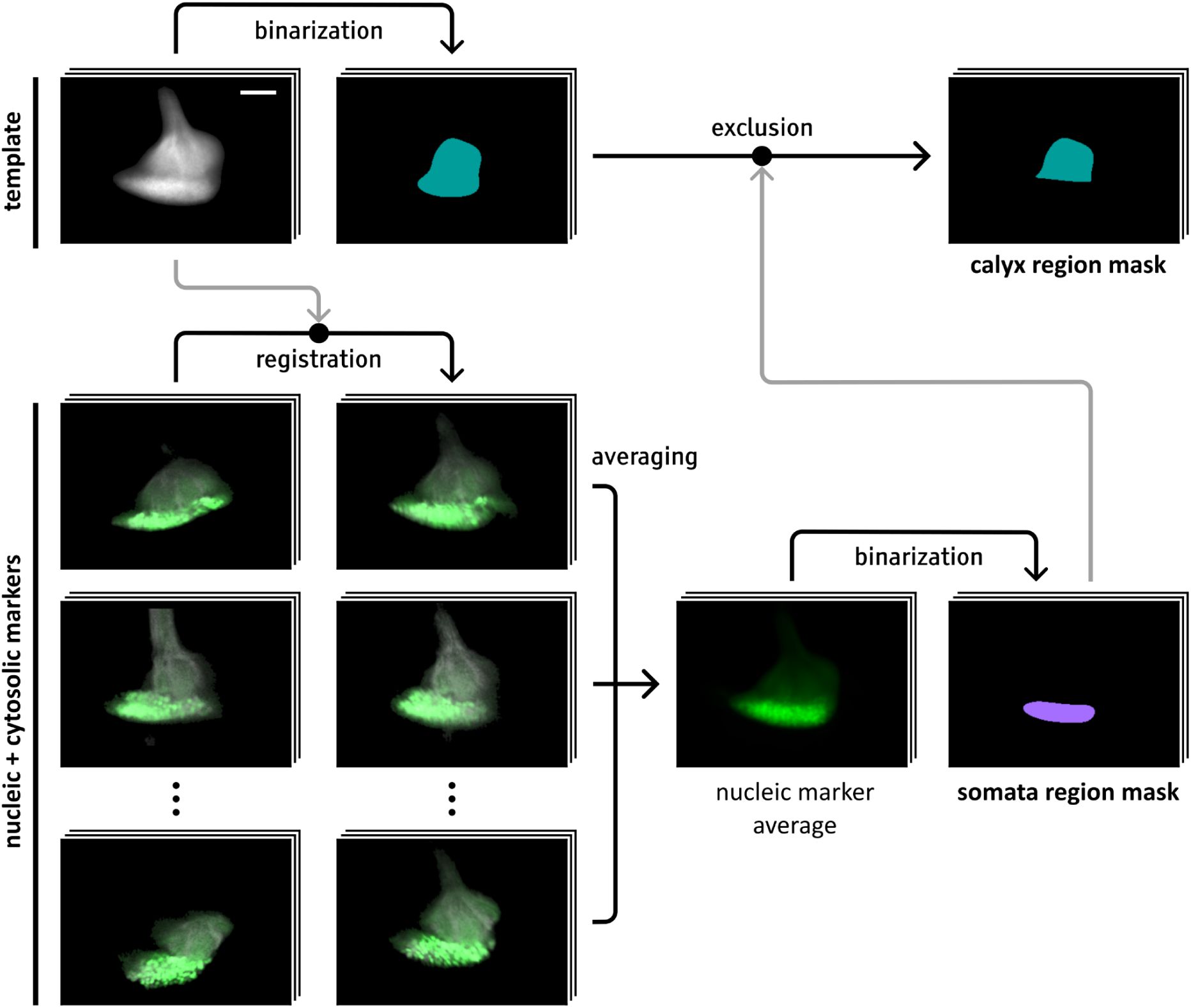 Building a template image of the somata and calyx region