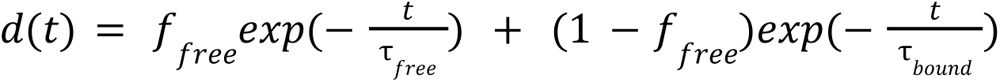 Theoretical fluorescence decays were modeled using the following bi-exponential function D: