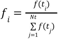 In practice, f was evaluated for Nt = 129 time steps ti corresponding to the time bins of the FLIM data and normalized: