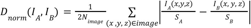 To accelerate the estimation for all voxels of an image, a two-step process was carried out. An initial fitting was computed on a downsampled version of the image, which had been decimated by a factor of 3 in the X and Y directions. The time shift Δt was then fixed to the median of the obtained values, enabling the application of a streamlined three-parameter model to the complete image.