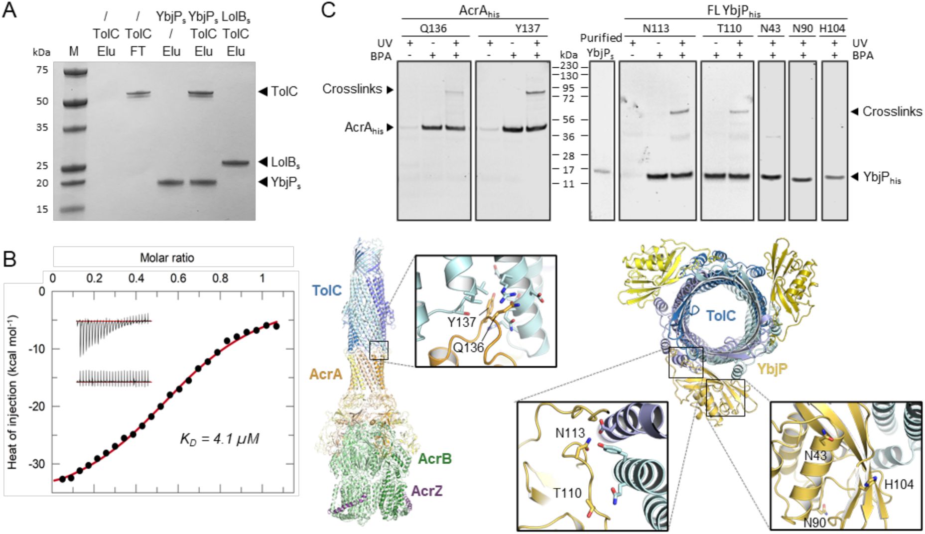 Validation of the TolC-YbjP interaction by in vitro pull-down and in vivo photo-crosslinking