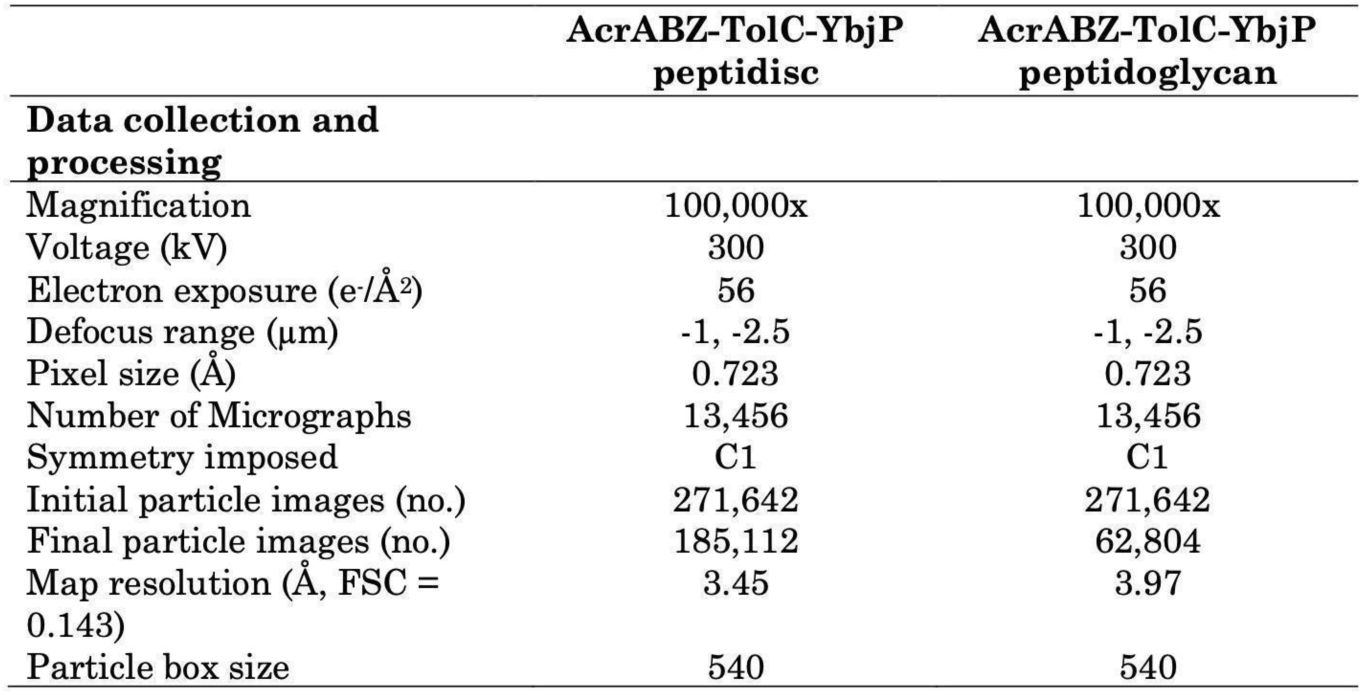 AcrABZ-TolC-YbjP preparation with mature peptidoglycan and cryo-EM processing