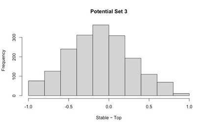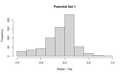 - Histogram of (Stable Posterior Probability – Top Posterior Probability)